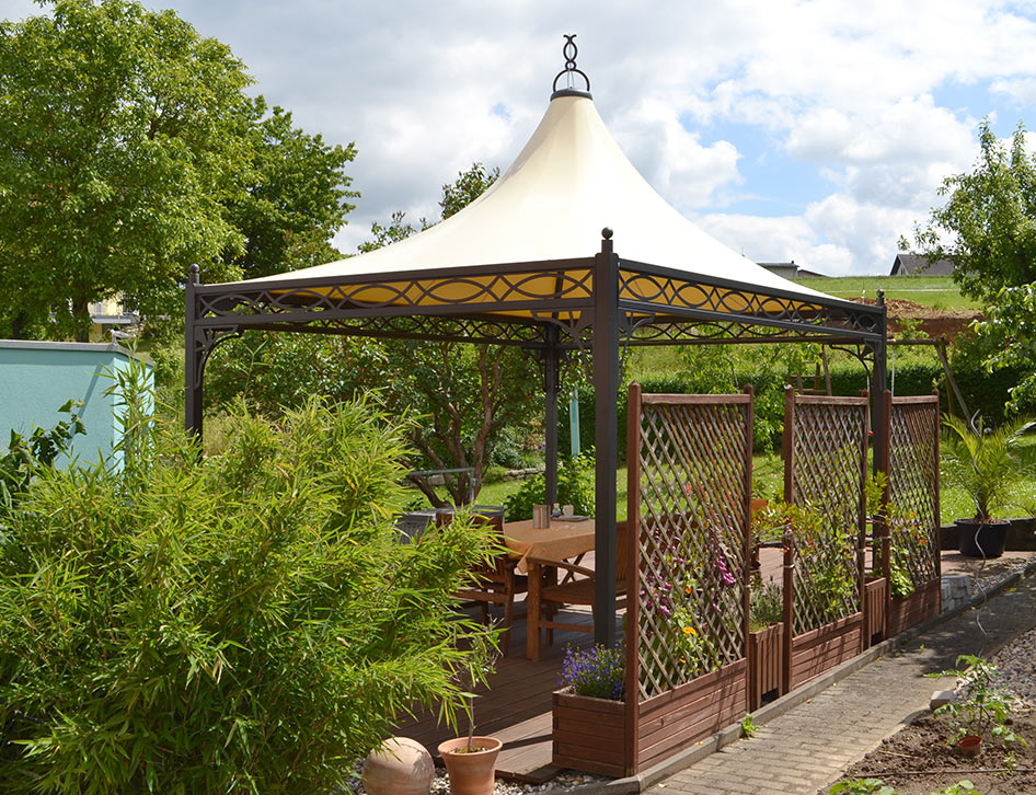Wer sich für den Gartenpavillon Antica Roma mit anthrazitfarbenem Stahlgestell entscheidet, legt Wert auf eine harmonische Gartengestaltung. Mehr ...